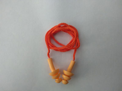 Protetor Auditivo, confeccionado em silicone grau farmacêutico, tipo inserção, composto de um eixo com três flanges maciças e cônicas, todas de dimensões variáveis, contendo um orifício no seu interior, protetor tamanho único, moldável a diferentes canais auditivos, com cordão de algodão. COR SALMÃO embalagem caixa